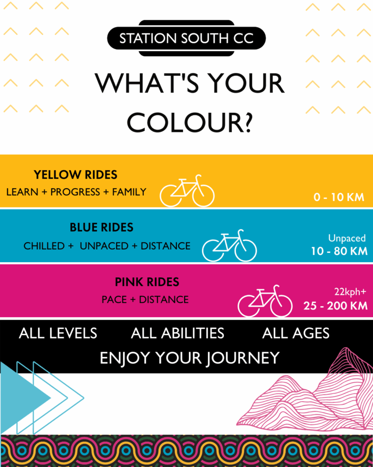 As usual, we have regular rides going out with Pink – with some planned for Blue and Yellow as well. Follow all of the links to stay in the loop with rides. What do the colours mean? Check out the poster!  See you on the roads, trails and canals 🙂